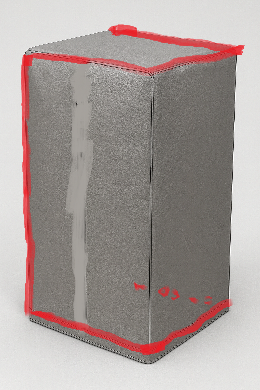 Hình dáng: Dạng hình hộp chữ nhật (hoặc trụ vuông) úp ngược, được may đo chính xác theo kích thước máy (Ví dụ: Cao 190cm).